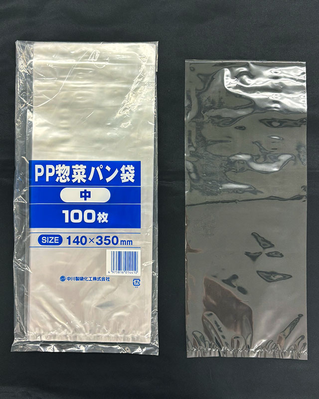 透明度と光沢に優れたポリプロピレン製のパン用袋です。主にコッペパンやフランスパンを加工した惣菜パンの包装に適しています。安心安全の国産品です。