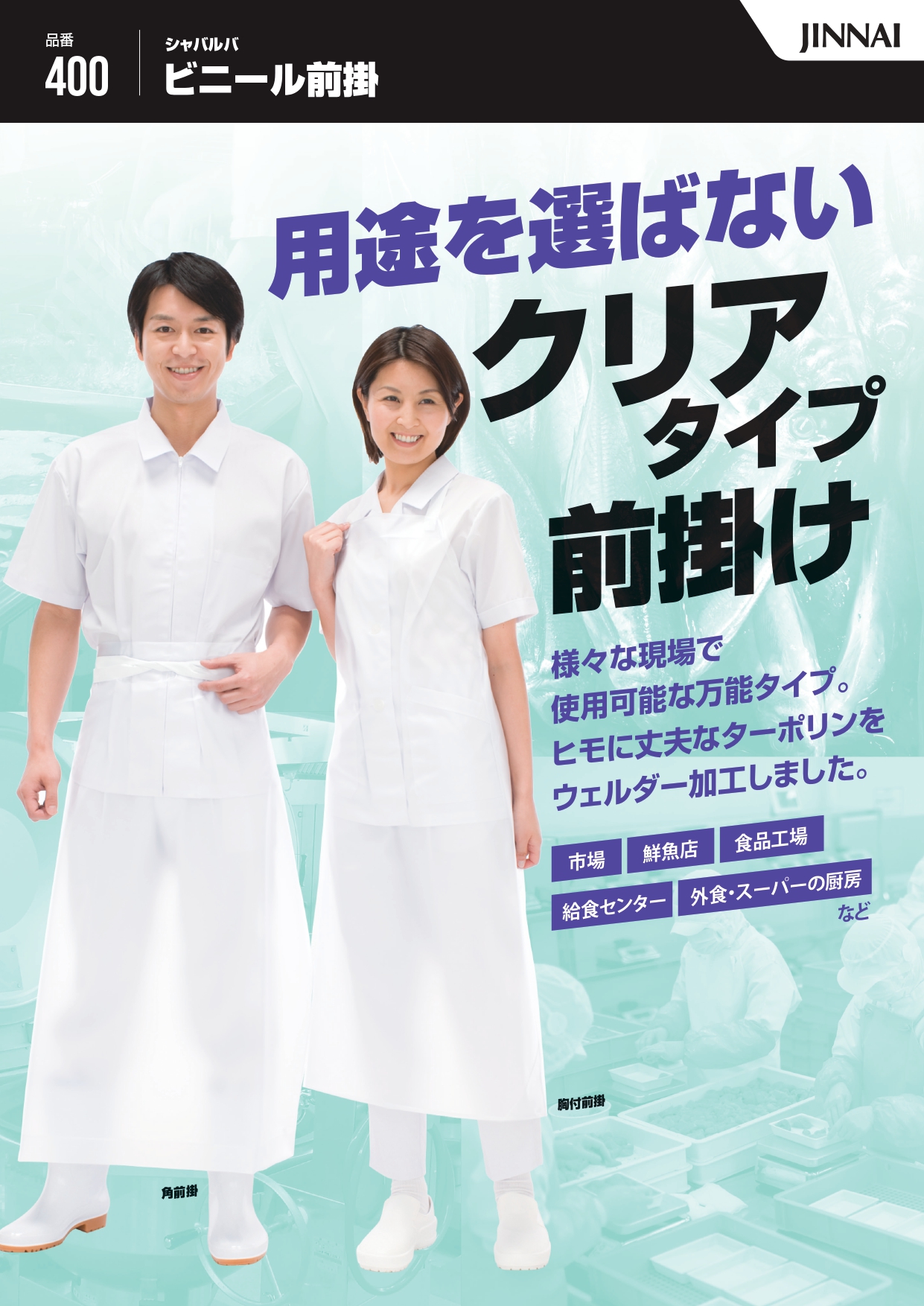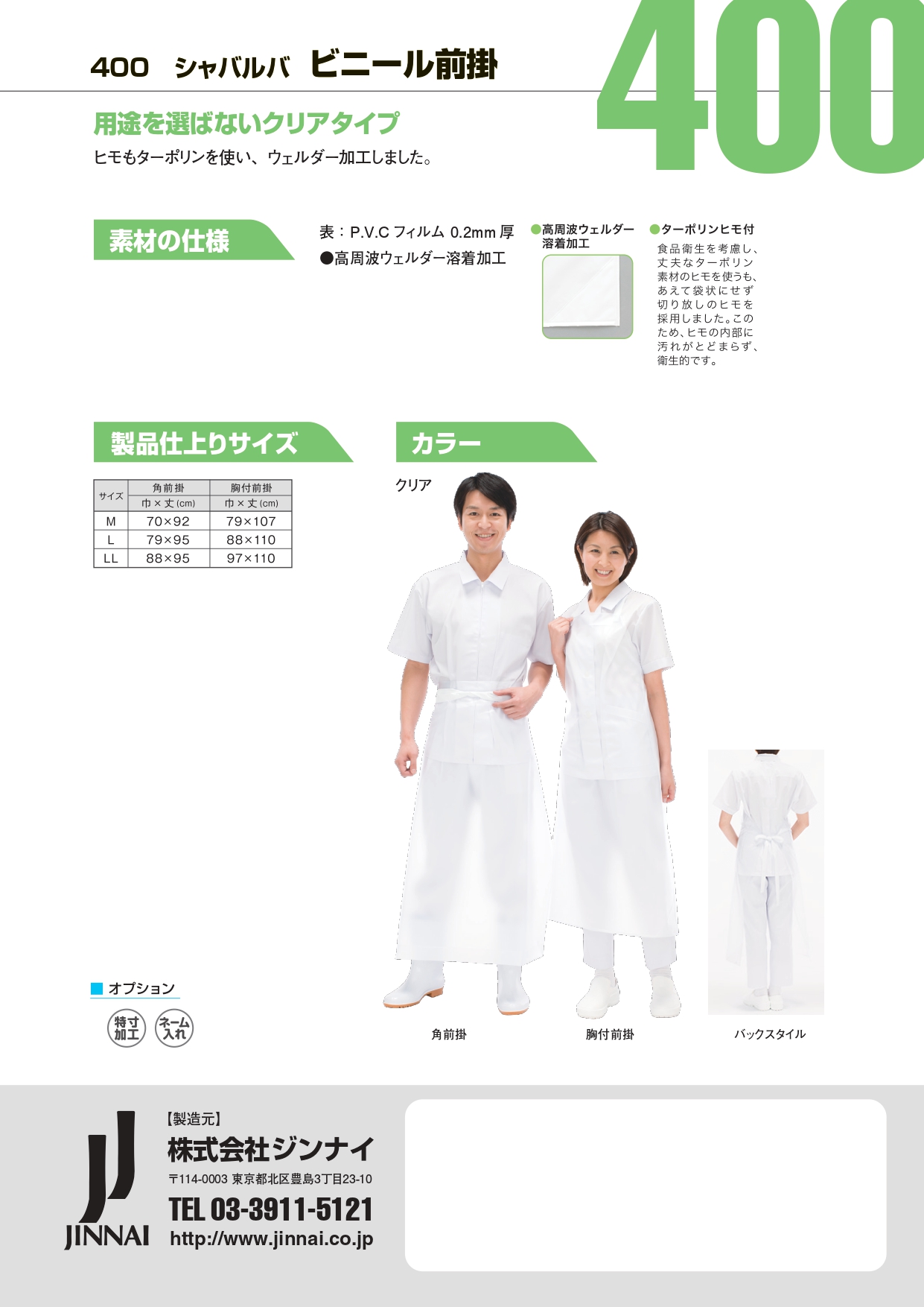 400LL ビニール前掛【クリア|LLサイズ胸付】クリアタイプエプロン(半透明)/高周波ウェルダー溶着加工/共ヒモ