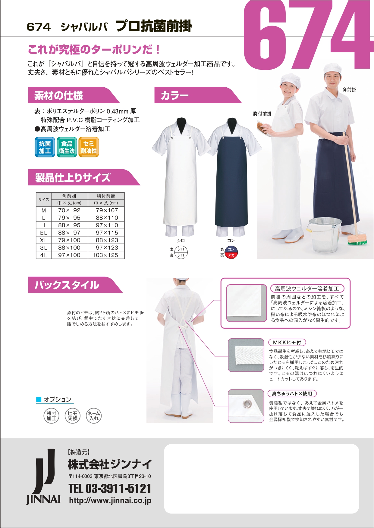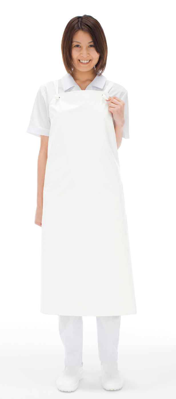 674-WLL プロ抗菌前掛【白|LLサイズ胸付】厚みのある生地/コストパフォーマンス〇/高耐久性/高周波ウェルダー溶着加工/ヒモ付け替え可能