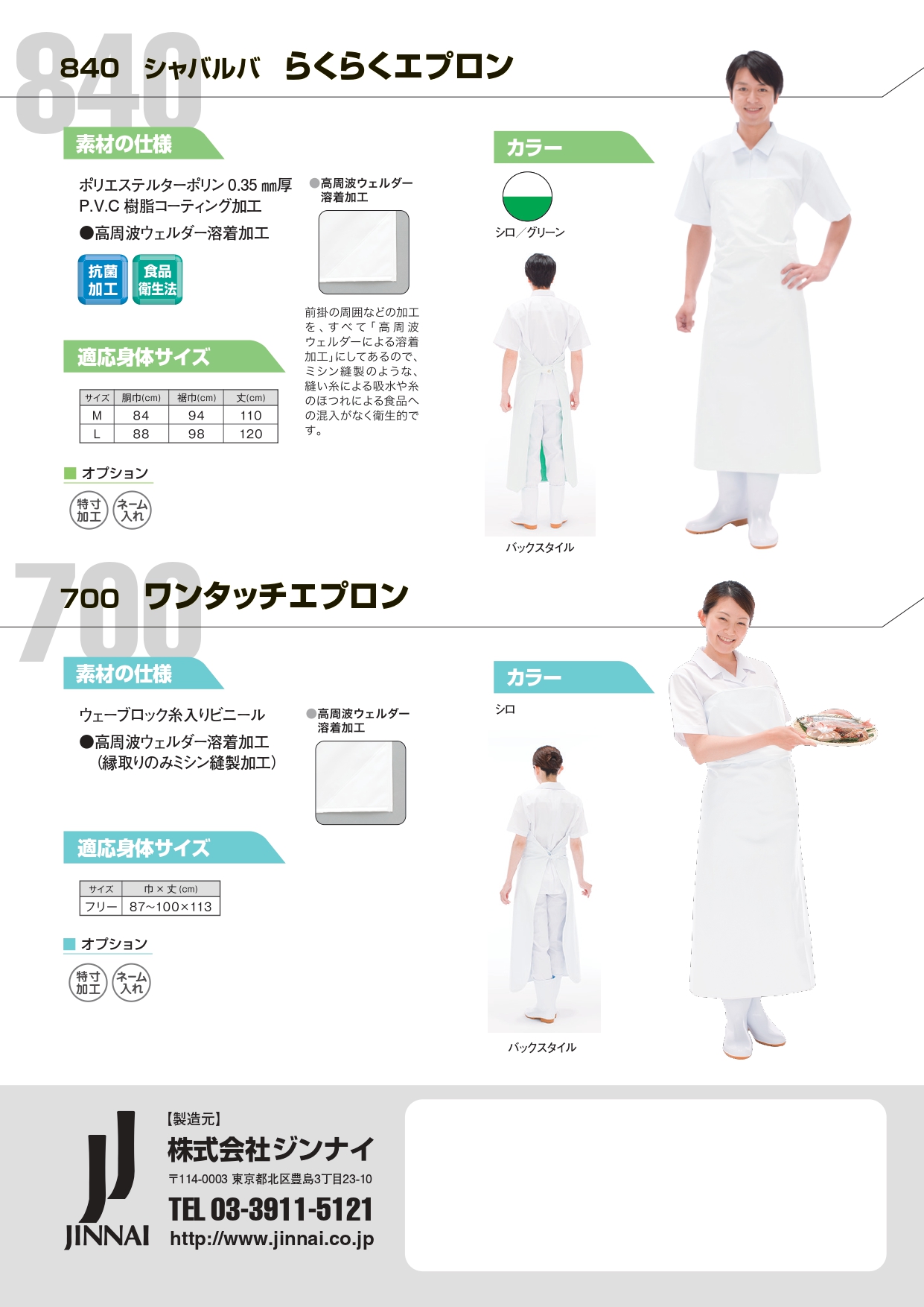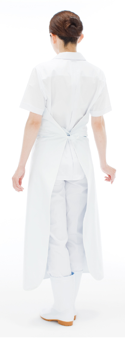 700 ワンタッチエプロン【白|胸付】ヒモなしのワンタッチエプロンで負担軽減/高周波ウェルダー溶着加工(縁取りのみミシン)