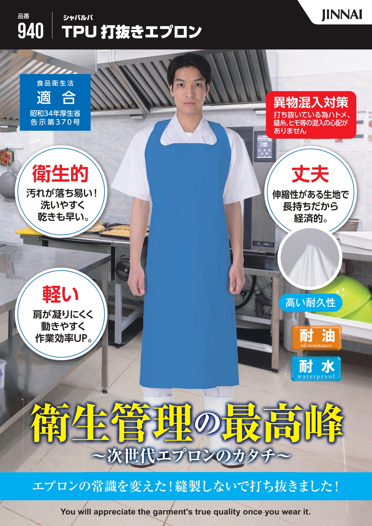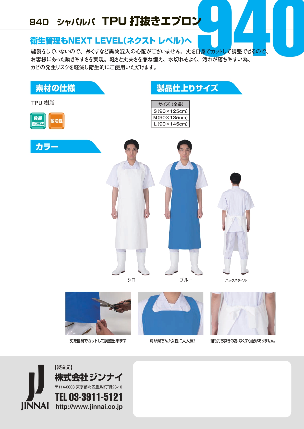 940-BM TPU抜き打ちエプロン【青|Mサイズ胸付】軽量/高耐油性/縫製なしで異物混入やカビ発生リスク軽減/丈をカットして調整可能