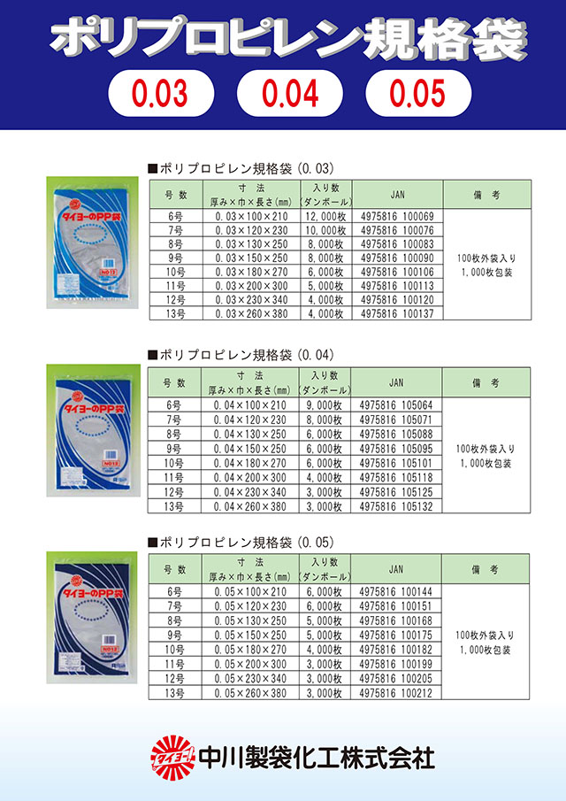 品番:S000198No. 13/タイヨーのPP袋(PP規格袋0.04)