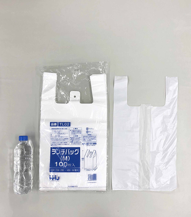 お弁当、お総菜のお持ち帰り用に便利なレジ袋です。幕の内弁当に最適なサイズです。※吊り下げて使用でき、1枚ずつちぎって使えます。