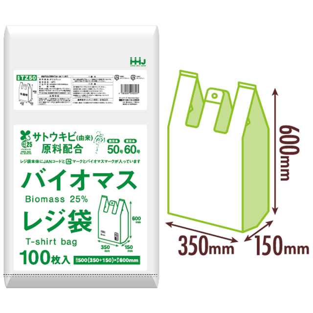 バイオマスプラスチックを25%使用し、無料配布対象になる半透明レジ袋です。