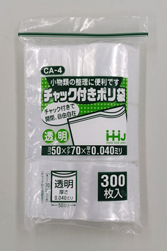 透明無地のチャック袋です。B4サイズの用紙が折らずに入るサイズです。既存品のCK-4に比べて、開口部に段差があるので、開けやすいのが特徴です。既存品の製品とカット方法にも違いがあり、側面部分の手触りがギザギザとしています。